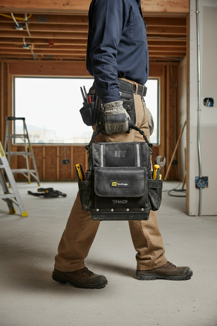 This cost-effective tool bag boasts premium quality: YKK zippers, waterproof fabric, and custom heavy-gauge materials (thicker/durable than standard) for lasting jobsite performance.