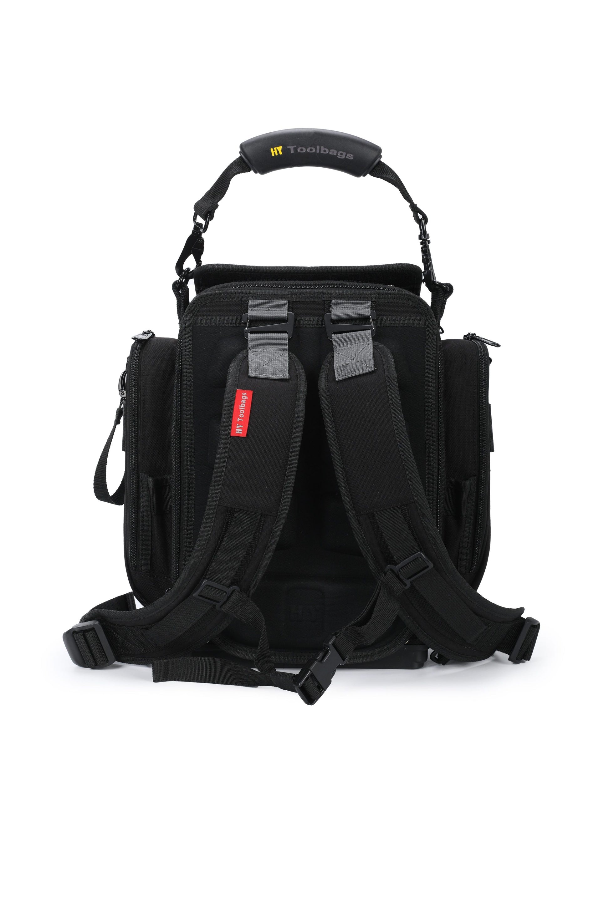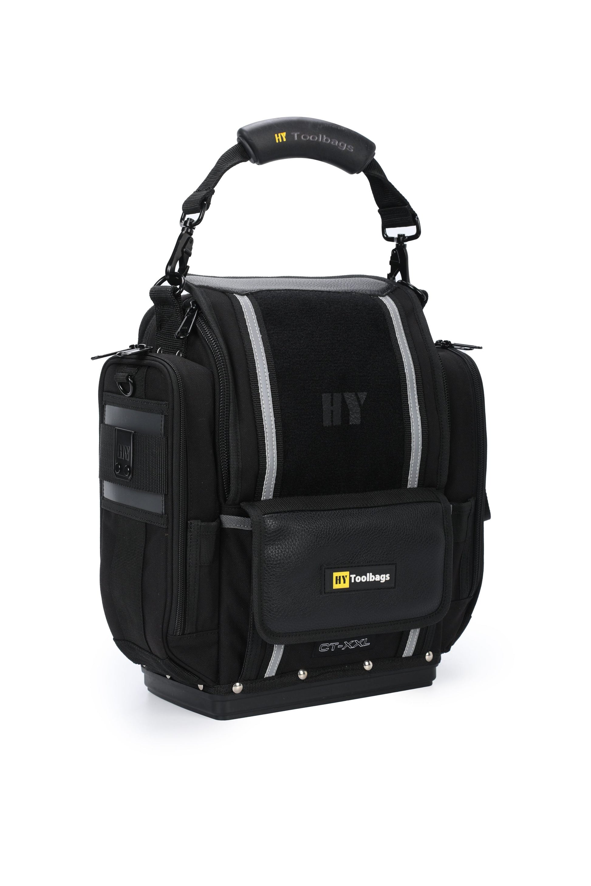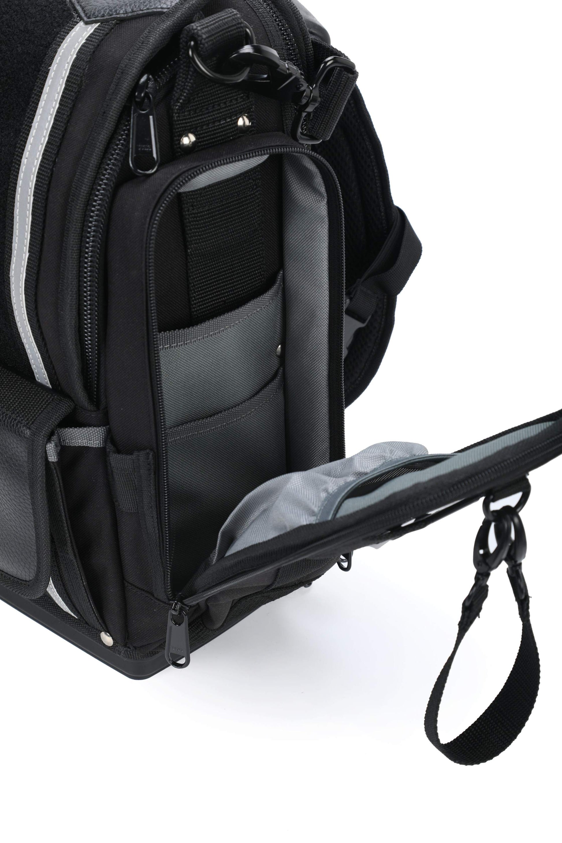 The Closed Top extra large modle (CT-XXL) is a perfect tool bag for electrician, engineer. CT-XXL gives you even more customizable storage and travel-friendly features to keep your tools organized. It fits 14" laptop. YKK Lockable Zippers, Duraflex buckles.