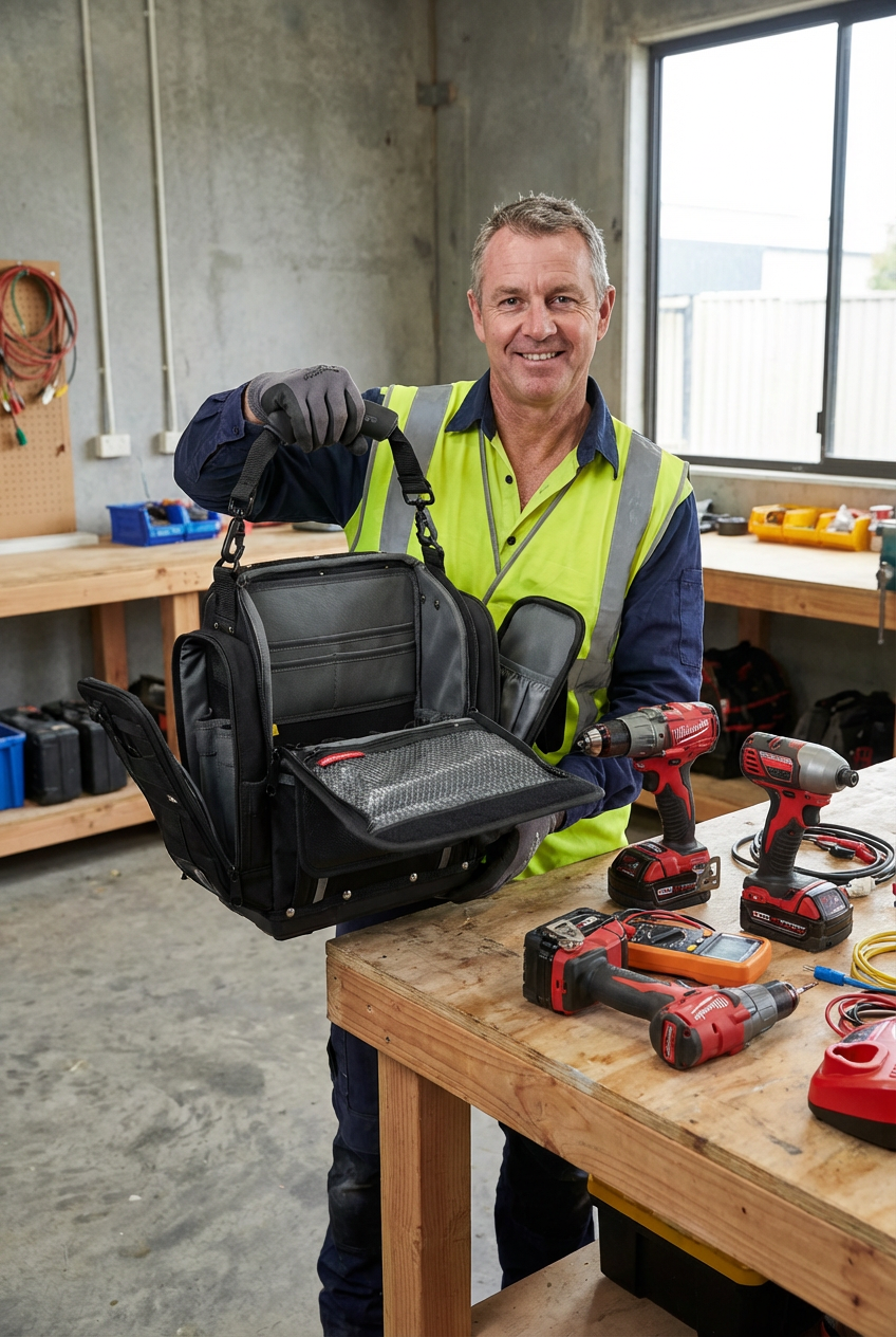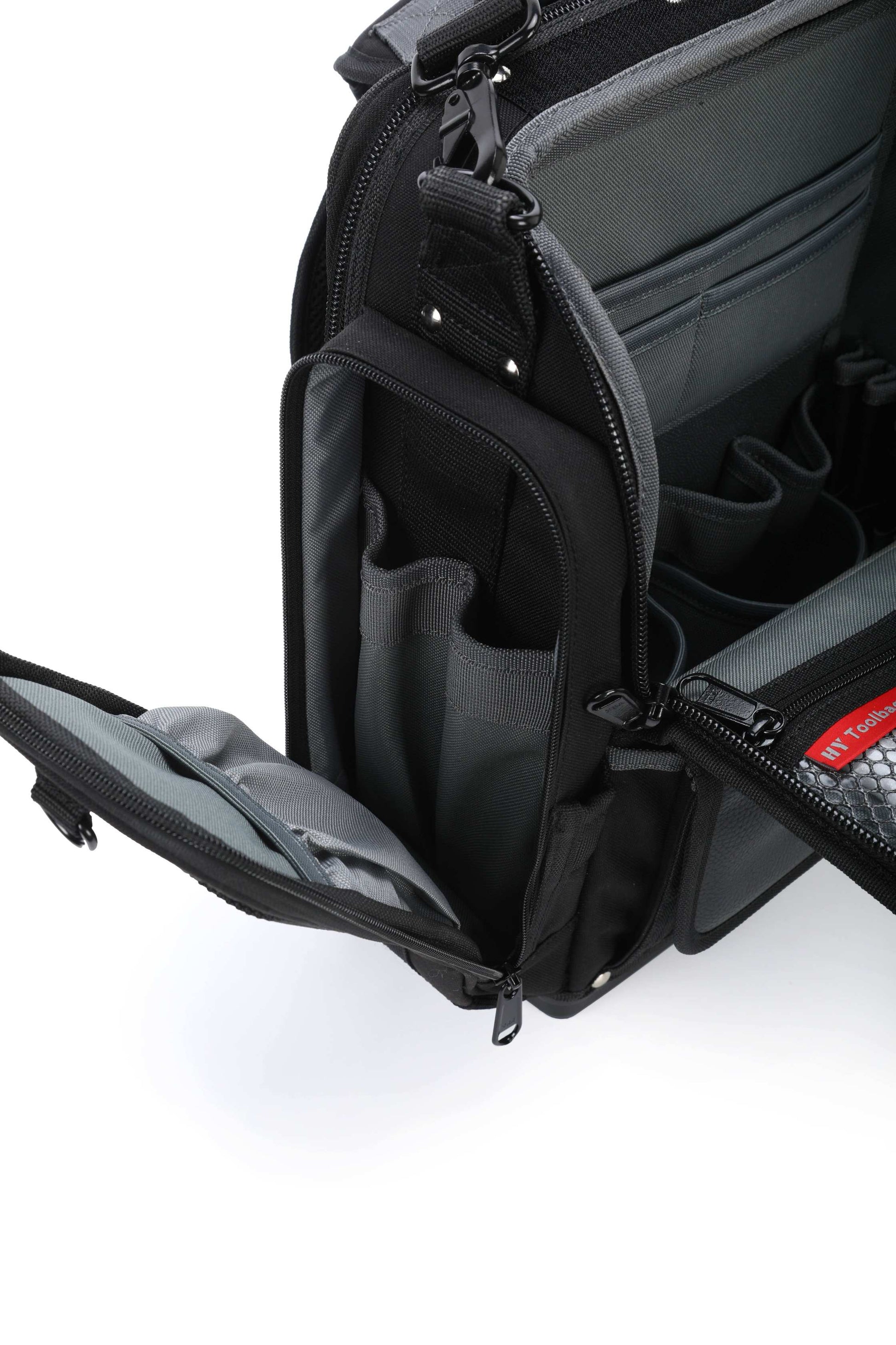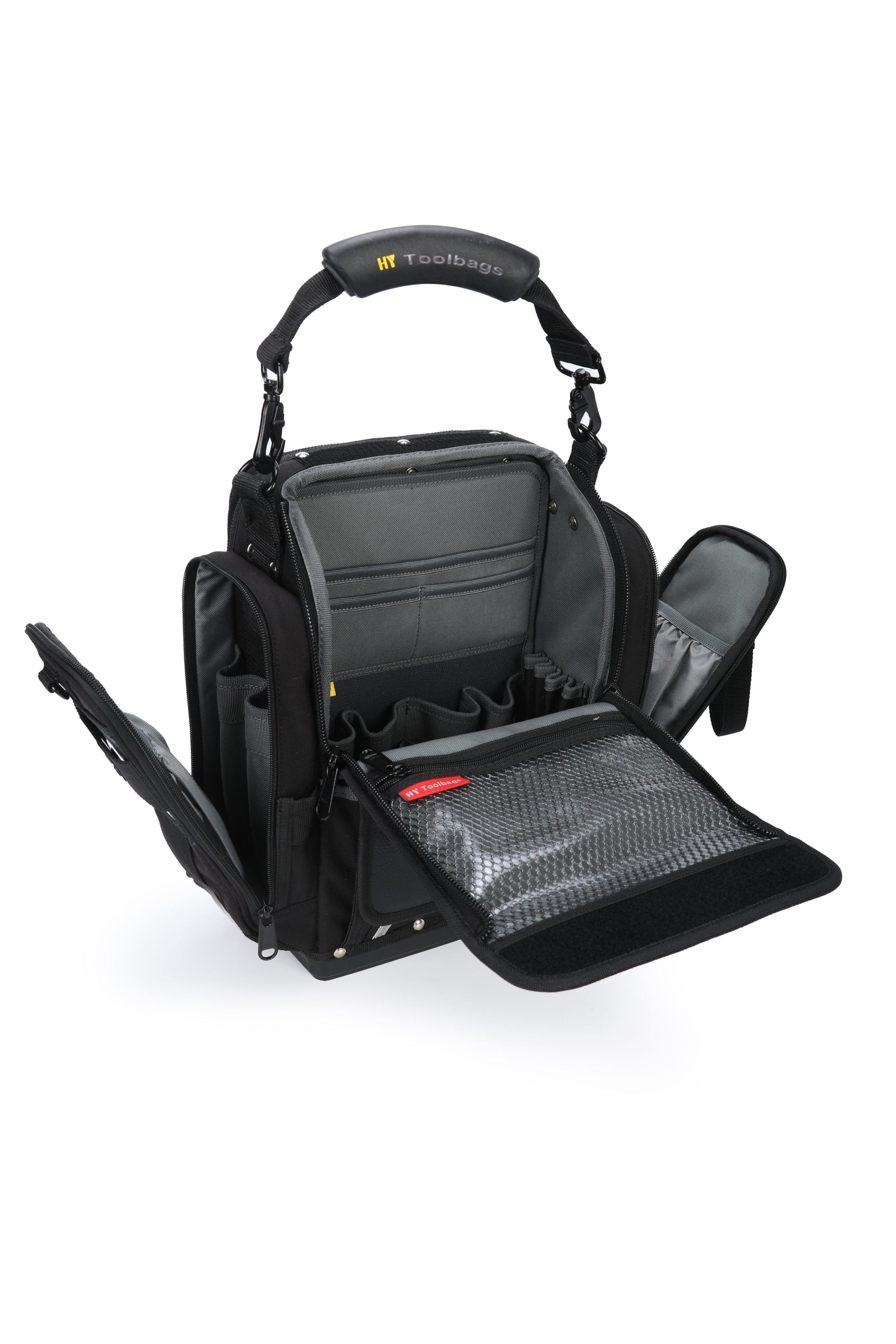 The Closed Top extra large modle (CT-XXL) is a perfect tool bag for electrician, engineer. CT-XXL gives you even more customizable storage and travel-friendly features to keep your tools organized. It fits 14" laptop. YKK Lockable Zippers, Duraflex buckles.